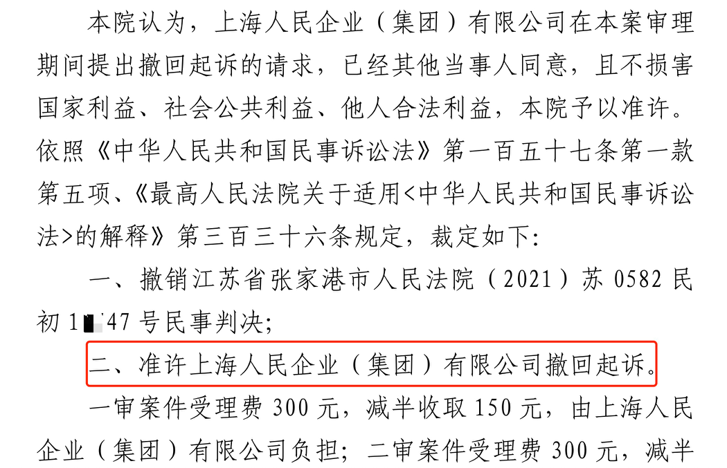 周口胜诉佳讯 | 人民企业系列案苏州六案上海人民公司撤诉