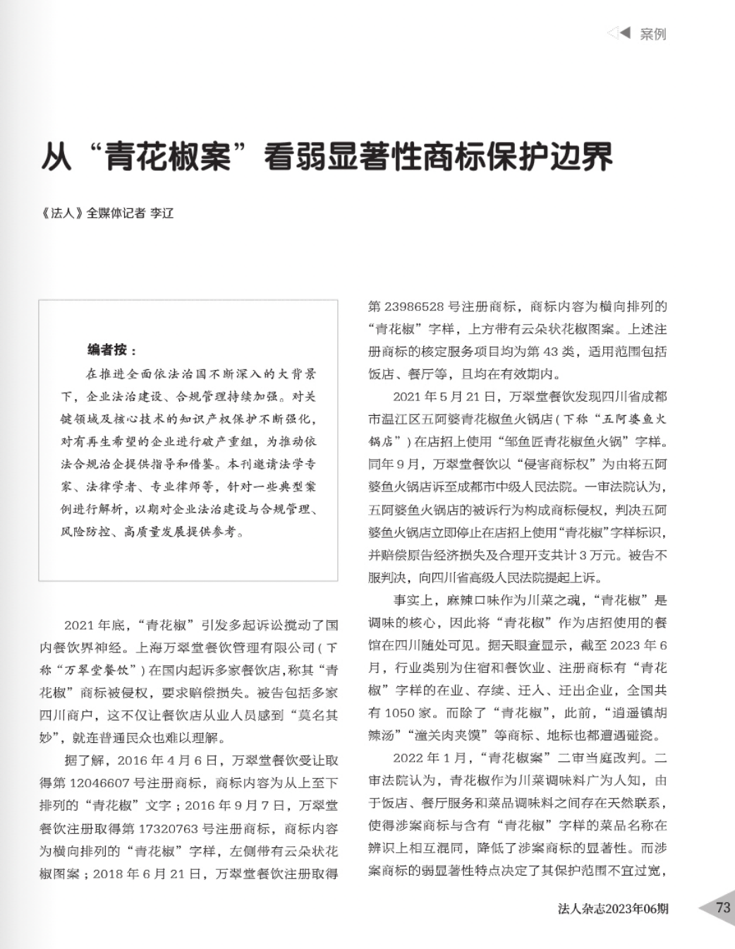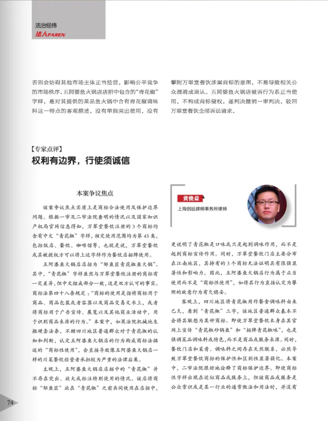 周口辉知简讯 | 辉知队黄俊益律师应“法治日报”旗下杂志邀请,就“青花椒”案发表专家点评